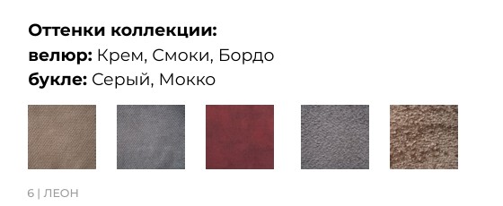 - Ткань типа «Велюр», цвета: крем, смоки, бордо.
