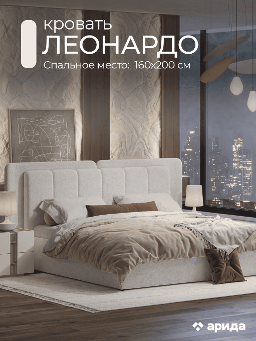 Кровать ЛЕОНАРДО (мби) молочный 160х200