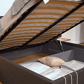 Кровать под матрас 160х200 – комплектуется ортопедическим основанием с подъемным механизмом и ящиком для белья