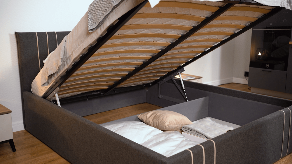 Кровать под матрас 180х200 – комплектуется ортопедическим основанием с подъемным механизмом и ящиком для белья