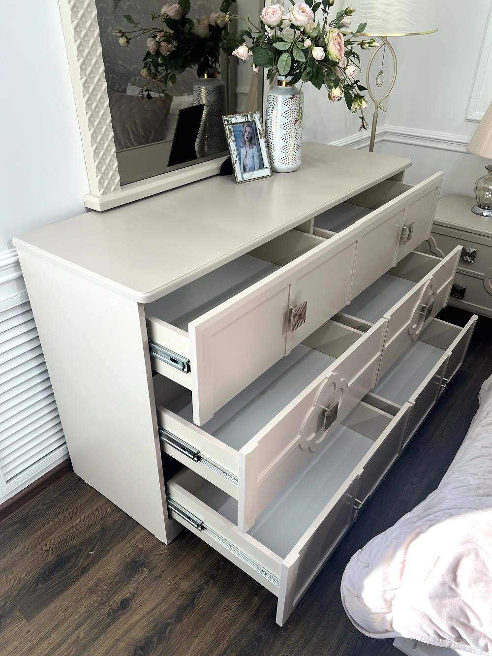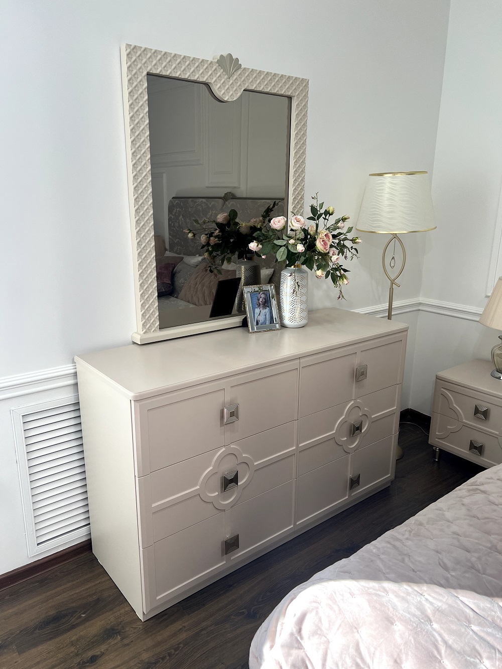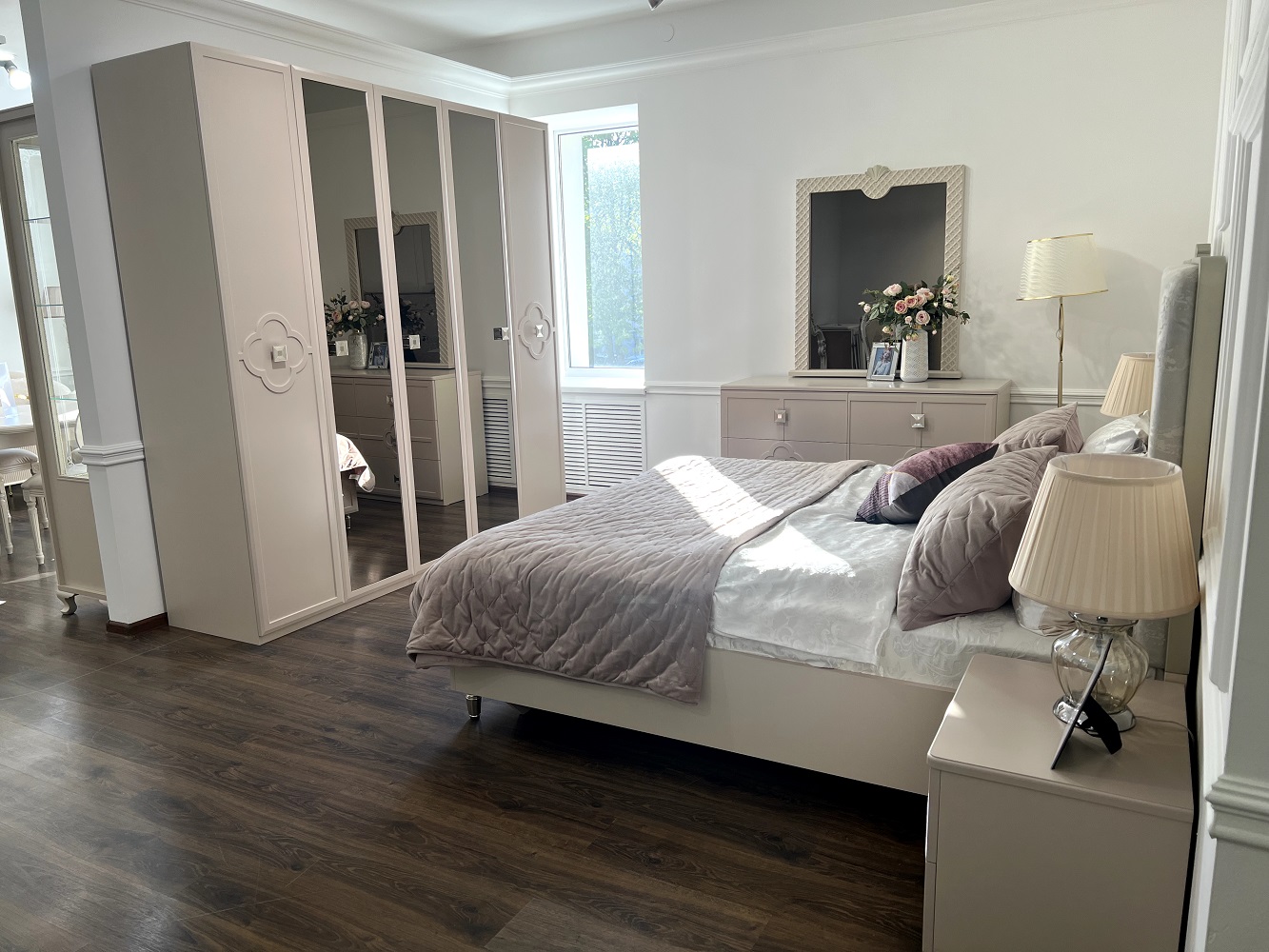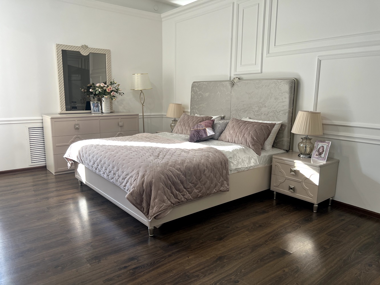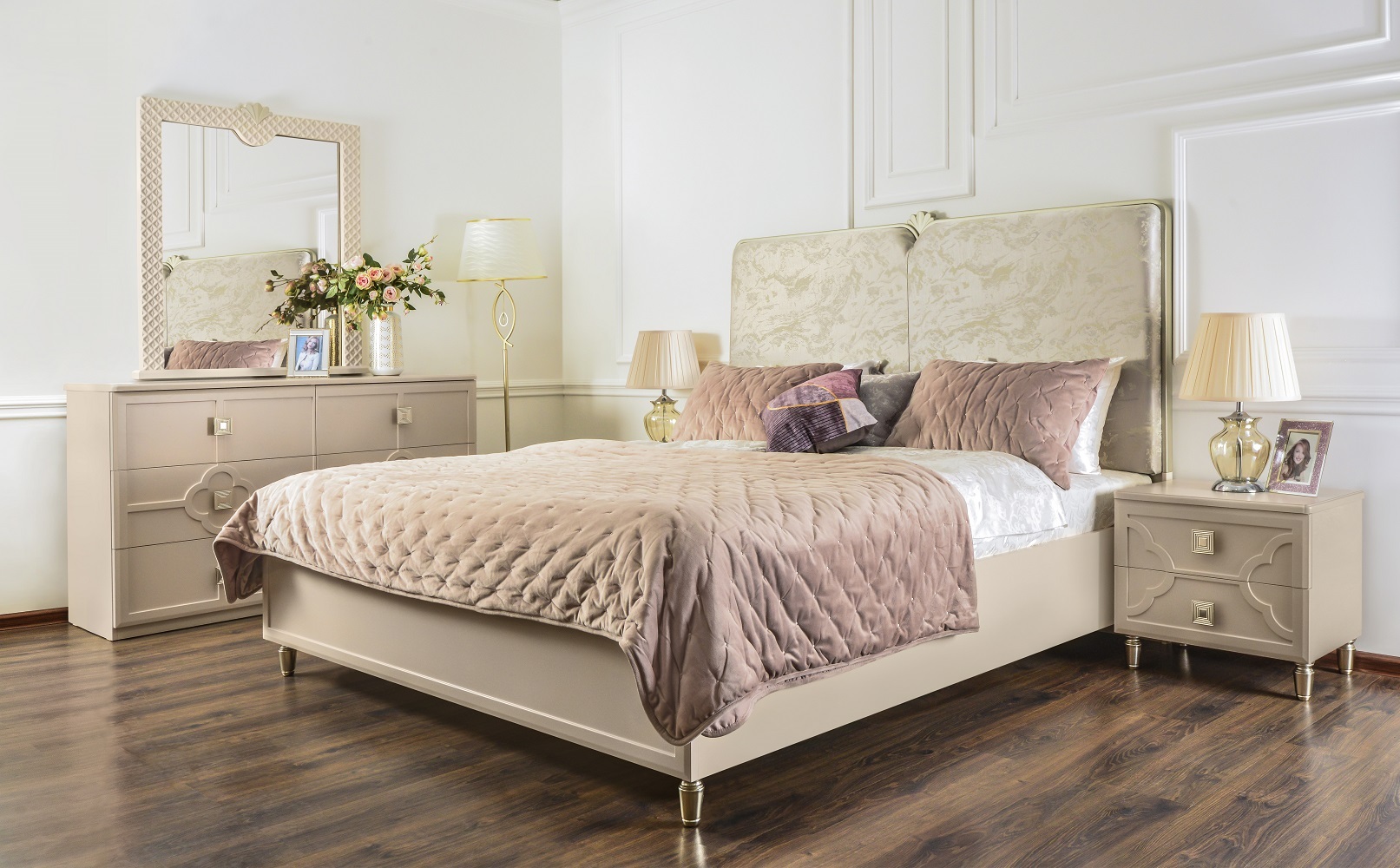 - Универсальные текстуры мокко беж и отделка сатин цвета шампань встроятся под любой интерьер.