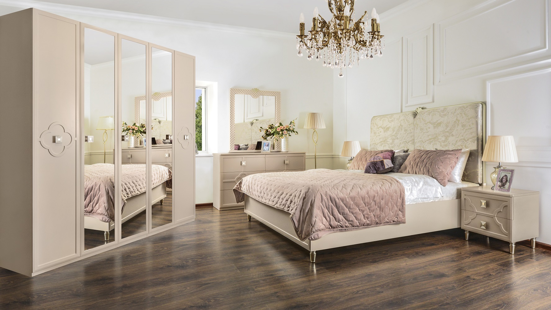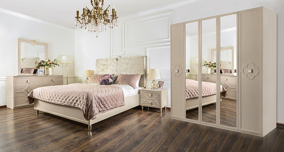 - Особая изюминка коллекции - уникальный дизайн от дизайнеров из самых модных домов Van Cleef дизайн Alhambra представлен в виде повторяющегося сочетания четырехлистного клевера талисман, который означает удачу и благополучие. Выбирая эту спальню, вы получаете не просто красивую мебель, а настоящий талисман, который будет приносить вам удачу и благополучие каждый день.