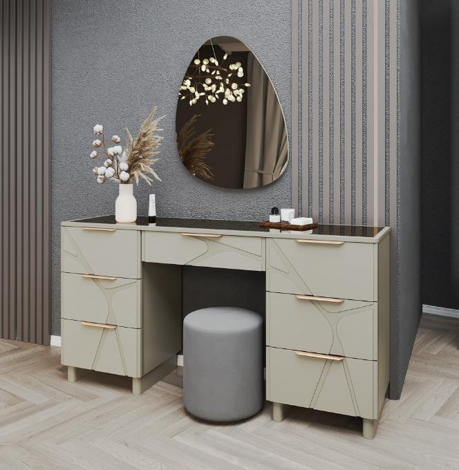 Уникальность туалетному столу придает универсальность назначения: это одновременно зона красоты и рабочая поверхность. Элегантный внешний вид сочетается с функциональностью, позволяя комфортно обустроить своё личное пространство.