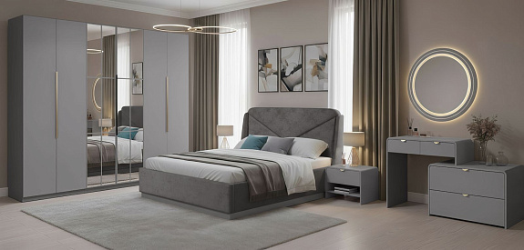- Кровать под матрас 180х200: 2030х2165х1305 - комплектуется ортопедическим основанием с подъёмным механизмом и ящиком для белья.