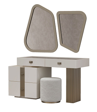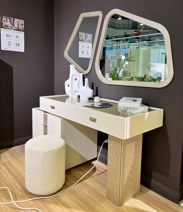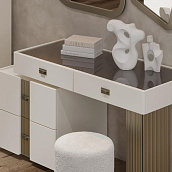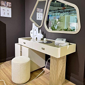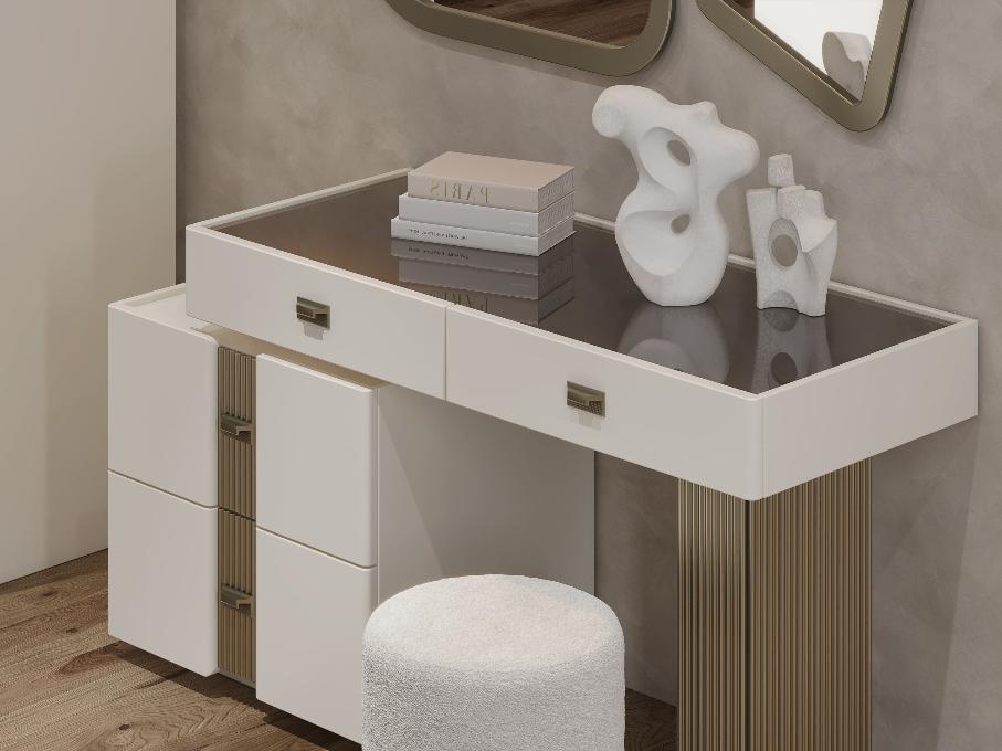 Туалетный стол с зеркалом и пуфом ЛЕОНАРДО крем/глянец