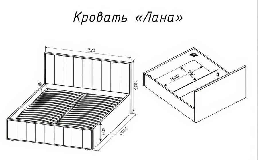 Кровать под матрас 160х200 – комплектуется ортопедическим основанием с подъемным механизмом и ящиком для белья